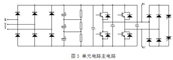 風光高壓變頻器,采用若干個低壓逆變器功率單元串聯(lián)的方式實現(xiàn)直接高壓輸出,單元電路模塊化設(shè)計,維護簡單,互換性好,高壓主回路與控制器之間為光纖連接,強弱電隔離,安全可靠,該10kV高壓變頻器,變壓器有24組付邊繞組,分為8個功率單元∕相,三相共24個單元,采用36脈沖整流,輸入端的諧波成分低于國標規(guī)定,高壓變頻器系統(tǒng)結(jié)構(gòu)如圖2所示,單元電路的主電路如圖3所示。