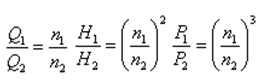 對離心式風機而言,流體力學有以下原理:輸出風量Q與轉(zhuǎn)速n成正比;輸出壓力H與轉(zhuǎn)速n的平方成正比;輸出軸功率P與轉(zhuǎn)速n的立方成正比;即: