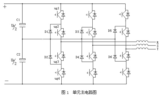 當(dāng)裝置功率大時(shí),需要這樣幾個(gè)主電路并聯(lián),并聯(lián)時(shí)需考慮均流與環(huán)流及其相位問(wèn)題,同時(shí)采用二極管鉗位的三電平電路需考慮直流端電容中點(diǎn)電位不平衡問(wèn)題,在軟件PWM波生成電路中尤其注重此點(diǎn)。