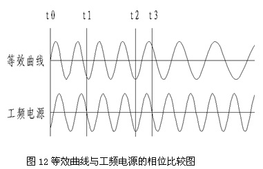 圖12是依據(jù)τp=20s的系統(tǒng)的電動機(jī)感應(yīng)電動勢的等效曲線與工頻電源的相位比較圖。
