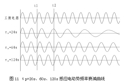 由公式曲線分別作出τp=20s、60s、120s的電動機(jī)感應(yīng)電動勢頻率衰減曲線,如圖11所示。
