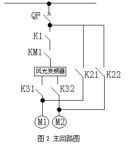 根據(jù)用戶要求,現(xiàn)場共兩套系統(tǒng),配置兩臺風機,配置一套變頻器,即一臺變頻器拖動二臺電機,采用一拖二方式。旁路系統(tǒng)由1個高壓真空接觸器KM1和5個高壓隔離開關K1、K21、K22、K31、K32組成。要求K21不能和K1、K31同時閉合,K22不能和K1、K32同時閉合,在電氣上實現(xiàn)互鎖。K1與K31閉合,K21斷開,1#電機變頻運行;K1與K32閉合,K22斷開,2#電機變頻運行。K1與K31斷開,K21閉合,1#電機工頻運行;K1與K32斷開,K22閉合,2#電機工頻運行。