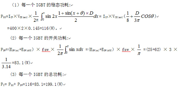 ?。?)每一IGBT(兩個橋臂)總功耗為: