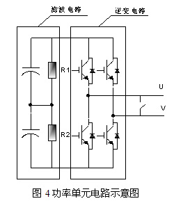 功率單元電路如圖4所示。為保證功率單元的可靠性,設(shè)計(jì)時選用同一批次的元器件,保證各元器件性能的一致性。每個功率單元均具有完善的保護(hù)措施,并且各工作狀態(tài)均送回主控單元,主控與各單元信號連接均采用光纖。
