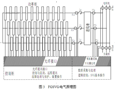 FGSVG產(chǎn)品的構(gòu)成主要有三個部分組成:進(jìn)線柜、功率柜、控制柜。圖3為電氣原理示意圖。