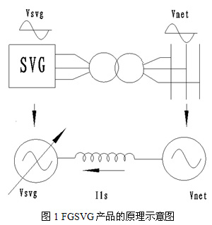 FGSVG產(chǎn)品的原理示意圖如圖1所示,基本原理就是將自換相橋式電路通過變壓器或者電抗器并聯(lián)在電網(wǎng)上,適當(dāng)?shù)卣{(diào)節(jié)橋式電路交流側(cè)輸出電壓的幅值和相位,或者直接控制其交流側(cè)電流就可以使該電路吸收或者發(fā)出滿足要求的無功電流,實(shí)現(xiàn)動態(tài)無功補(bǔ)償?shù)哪康摹?/p>